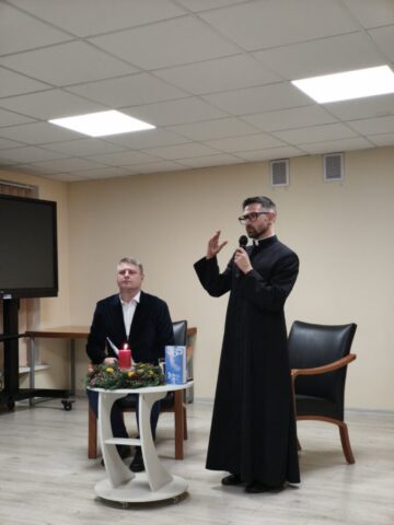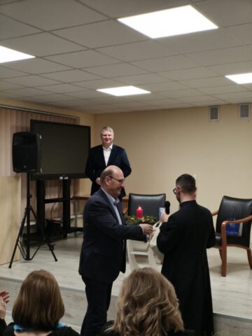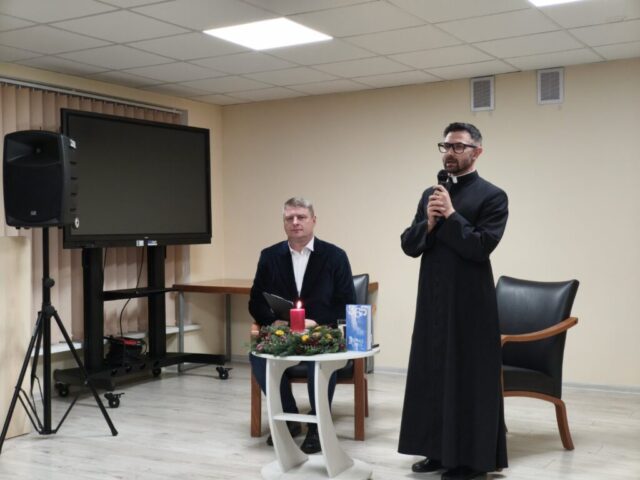 2025-12-10 d. Pakuonio seniūnijos salėje, mūsų klebono Vitalij Volodkovič kvietimu, viešėjo kunigas, rašytojas, poetas Benas Lyris (tikr. Vardas Benas Audrius Martusevičius) – lietuvių dvasininkas, savo mintis ir poeziją skelbiantis socialiniuose tinkluose.