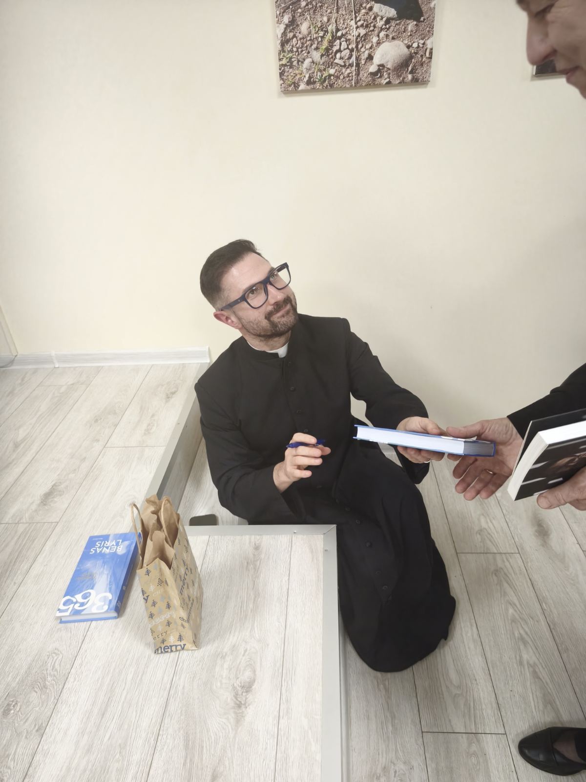 Tai tikrai neįkainojama dovana mums šiuo ypatingu advento laiku, kai aplinkui tiek daug skubos ir netikrumo. Po renginio visi skubėjome įsigyti Beno Lyrio kūrybos knygų. Sėdėdamas ant scenos laiptelio jis kiekvienam su meile pasirašė ant savo knygos.